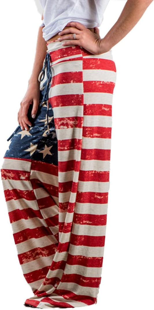 Women'S Comfy Stretch Floral Print Drawstring Palazzo Wide Leg Lounge Pant